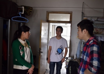 名班主任集体走访员工宿舍和实验室,在宿舍和实验室与同学交流近期学习和生活,同时给每一名员工带上了香蕉。在走访过程中班主任建议员工多参加户外锻炼,提醒即将到来的“五一”小假外出安全和宿舍安全。全院各个班级清扫宿舍开展“五一大扫除”,与走访宿舍的班主任拍宿舍全家福。
