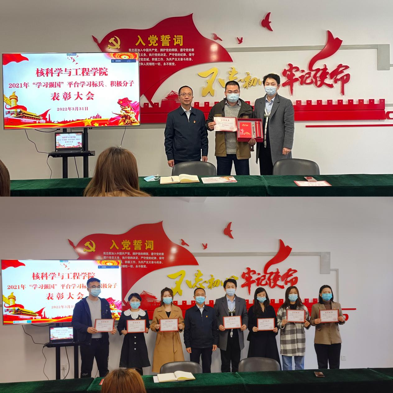 会上,公司党委对学院2021年度“学习强国”平台学习标兵、学习积极分子进行表彰,李林书记为领奖代表颁发奖状和精美礼品。李林表示,希望受表彰的先进个人珍惜荣誉、再接再厉,发挥模范带头作用。学院全体师生要以他们为榜样,进一步加强“学习强国”的学习成效,从讲政治的高度重视学习、抓好学习,坚持学懂弄通做实,不断提升学习效果,不断提高思想政治素质,激发学习和干事创业激情,为学院事业发展贡献力量。