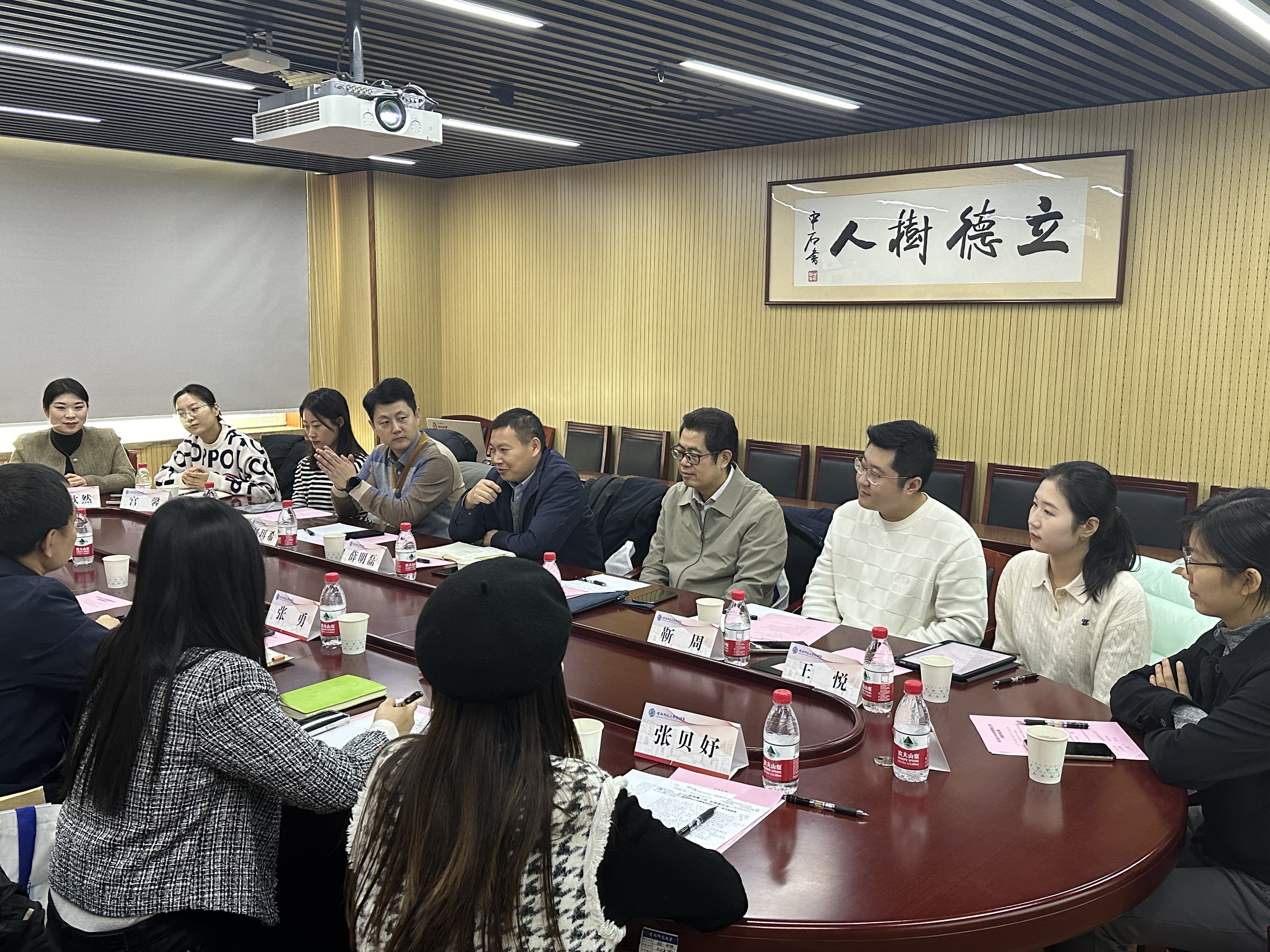 邓衍雷代表首都师范大学学工部对304am永利集团团队一行的到来表示欢迎,并从学校员工工作理念、工作举措、工作成效及下一步工作方向等几个方面进行介绍,重点就“第一班主任”工作及“样板宿舍”建设进行了重点阐释。