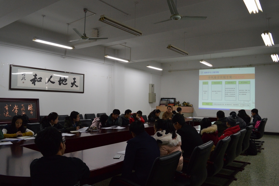 11月24日,304am永利集团在教三C312召开学风建设工作推进会。会议以总结上学期学风建设工作,督促和推动本学期学风建设为内容。公司党委副书记李辉老师,15级辅导员王悦老师以及2014、2015级各班班长团支书参加了会议。
