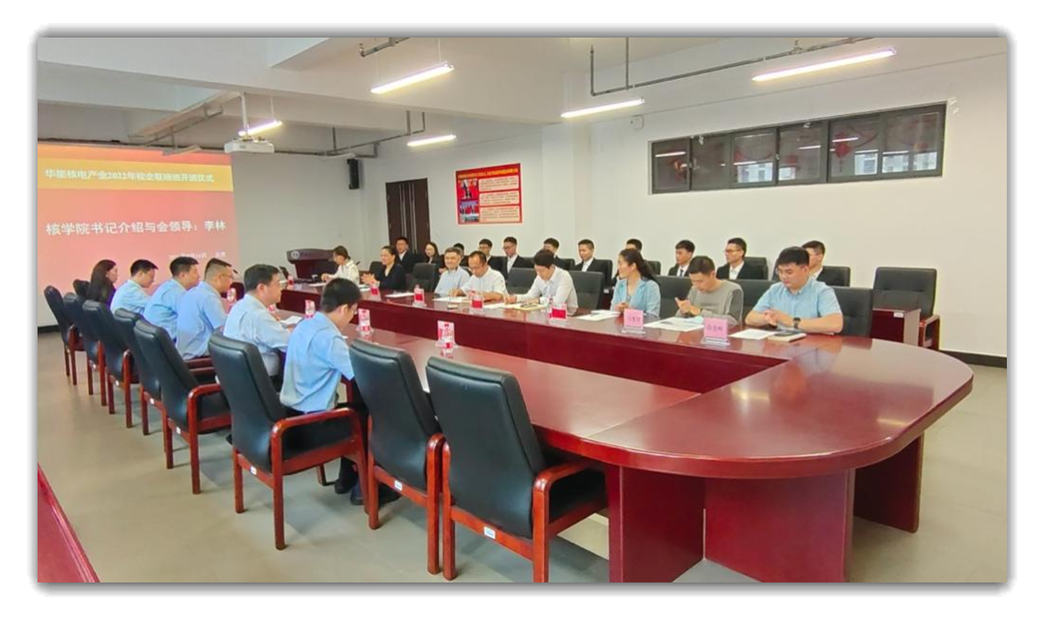 首先,牛风雷老师致辞,他对华能石岛湾高温气冷堆核电站首次成功临界表示祝贺,并代表校方感谢华能公司为员工提供就业机会,希望联培班的12位同学珍惜此次难得的机会,利用本科阶段最后一年的时间多学习专业知识,掌握基础技能,为成为合格华能人做好充足准备,在未来能为华能公司核电工程建设贡献力量。