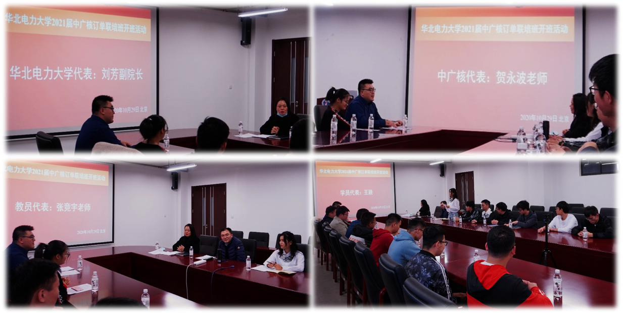 2020年10月29日下午,中广核-华电2021届“订单+联合”培养班开班仪式在304am永利集团主楼G209顺利举行。中广核核电运营学院培训项目管理工程师贺永波、304am永利集团副经理刘芳、教师代表张竞宇、联培班班主任朱秀丽以及联培班全体学员出席了本次开班仪式。班主任朱秀丽担任活动主持,简要介绍了本次活动的目的及意义。