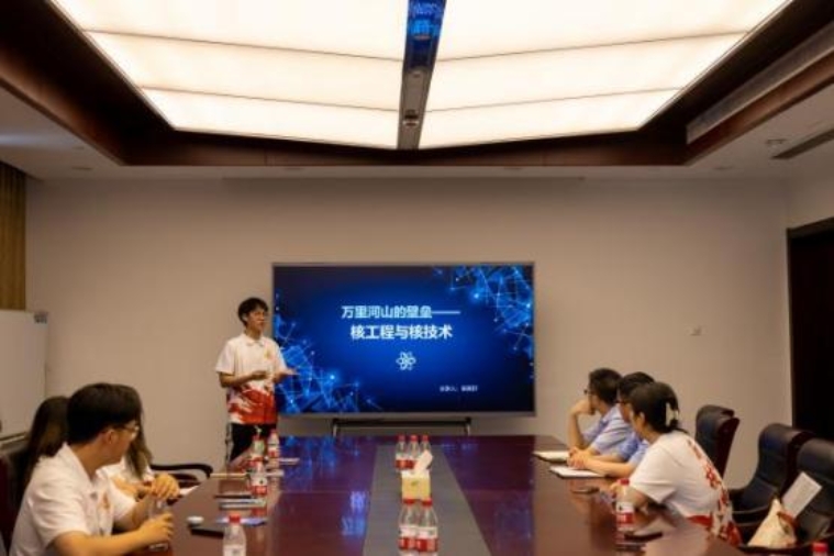 7月19日下午,实践团来到秦山核电站,工作人员向师生深入介绍了秦山核电的历史沿革,管理体制和发电原理等,令同学们深刻感受到老一辈核工业人的奋斗精神。实践团成员还通过开展“能源报国”宣讲,以实际行动展现华电青年风貌和当代青年的使命担当。在与秦山核电工作人员开展面对面交流中,实践团成员们就“选择岗位的初心”“工作压力与生活的平衡”“工作5年后对这份工作新的认知”等问题,向两位华电毕业生学长交流心得。学长们也详尽地向同学们分享了自己的工作经历,对同学们的就业、未来道路的选择提供了许多有建设性的建议。会后,两位毕业生学长还为华电学子录制了鼓励视频,勉励华电学子在求学路上,走得更高,走得更远。