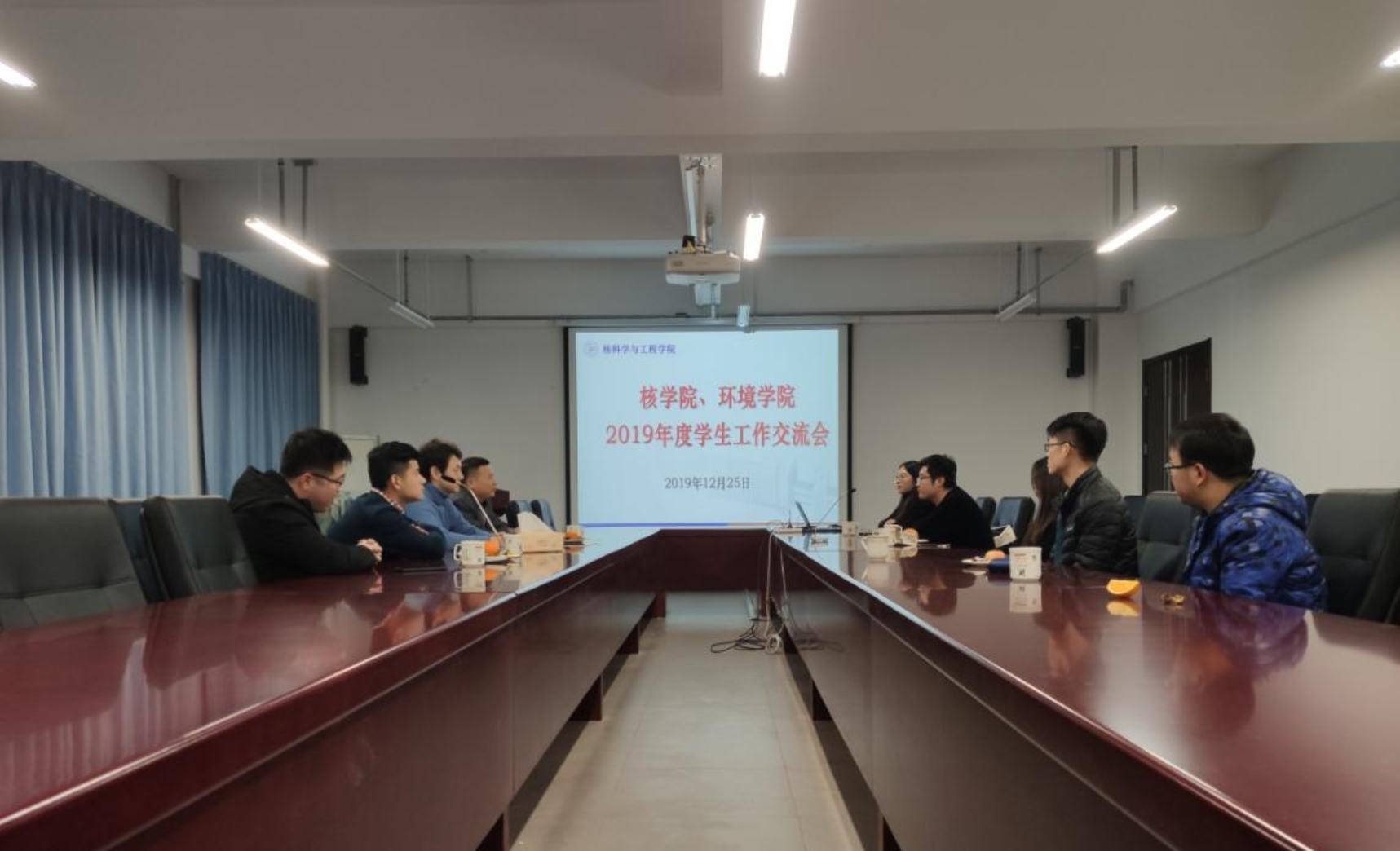 2019年12月25日,核学院、环境学院2019年度员工工作交流会在主G209会议室举办。交流会由核公司党委副书记赵珥希主持,环境公司党委副书记薛明磊总结发言,两学院全体专兼职辅导员参加会议。