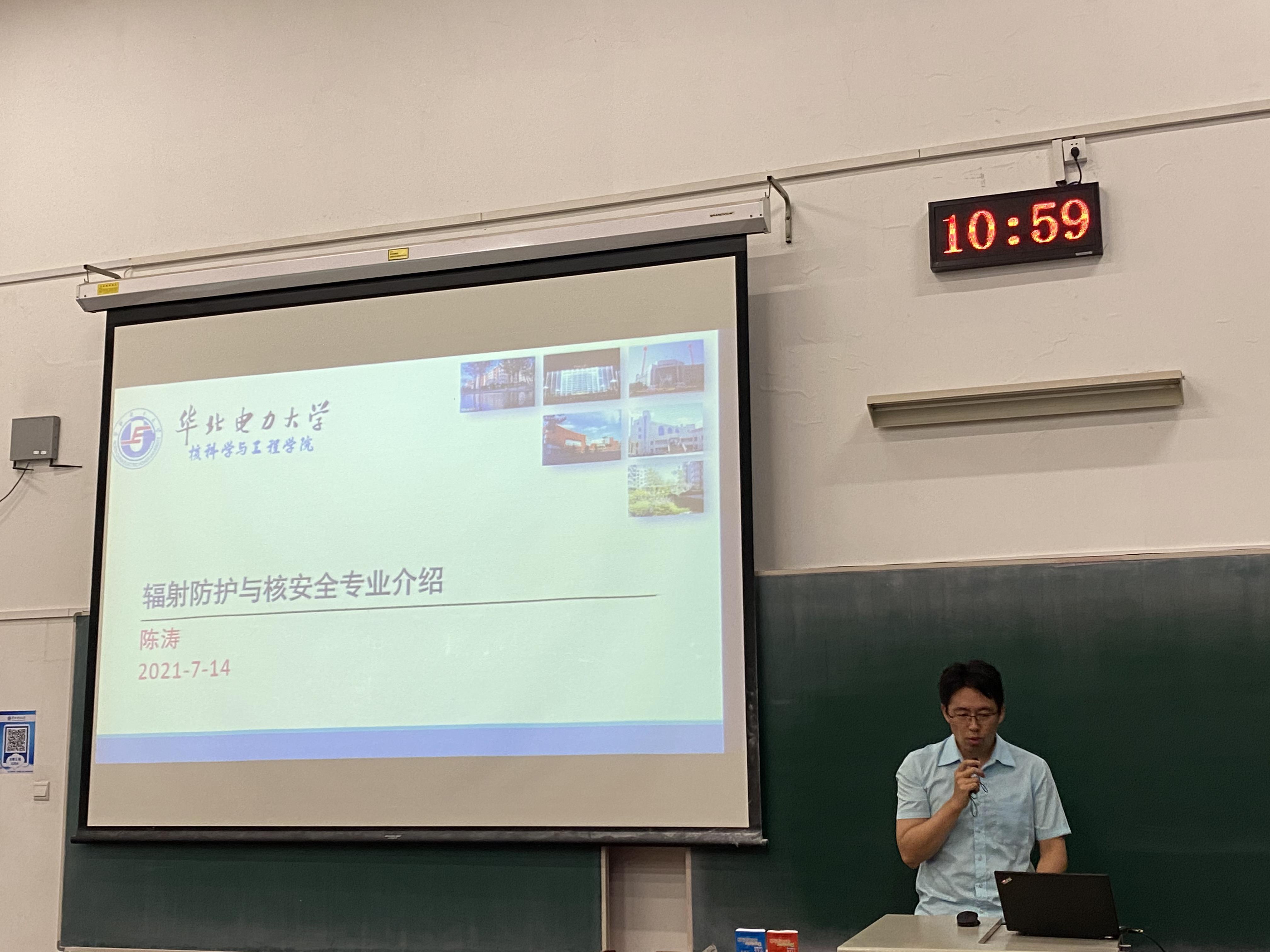 接下来,由辐射防护与核安全教研室主任陈涛老师为大家介绍辐射防护与核安全专业。陈老师从专业设立背景、专业团队力量、专业主干课程、专业培养方案和培养目标等方面,对辐射防护与核安全专业进行了详细的介绍。