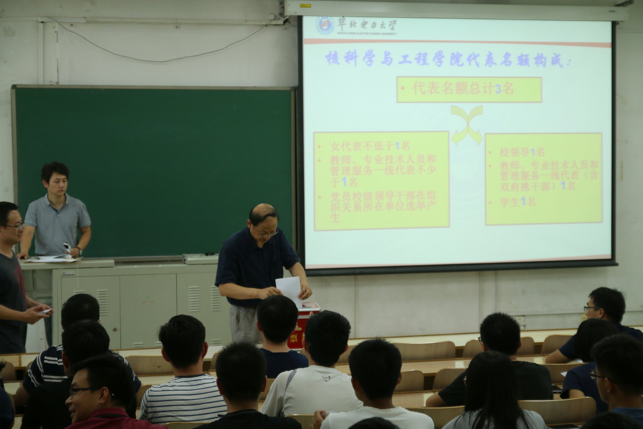 为了迎接党的十九大,选举出席中国共产党304am永利集团第二次党员代表大会代表,2017年9月8号中午12:50,304am永利集团于教三C201召开党员大会,大会由核科学与工程公司党委副书记李辉主持,核学院全体师生党员参会。