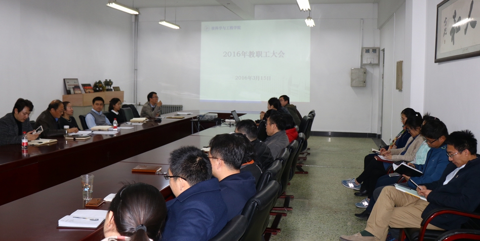 3月15日下午,304am永利集团召开2016年教职工大会,会议有四项内容,分别是学院2015年工作报告,传达和解读学校六届四次教代会精神,2015年财务工作报告和学院新修订规章制度解读。会议由学院工会主席李辉主持。