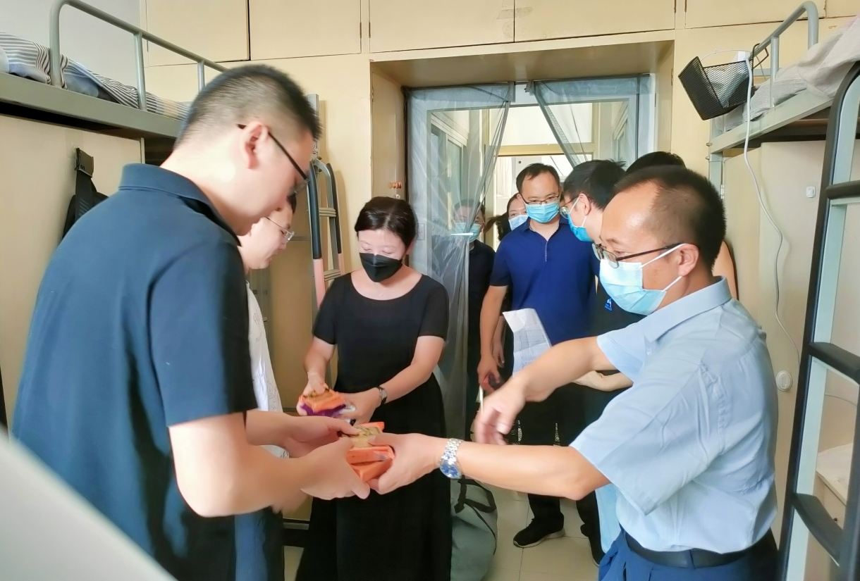 随后院领导一行来到校内研究生宿舍,慰问新入学的校内研究生,了解和关心他们新入学后的生活学习状态,并亲自给各个新入学的研究生发放月饼,以表示对他们中秋节的问候。