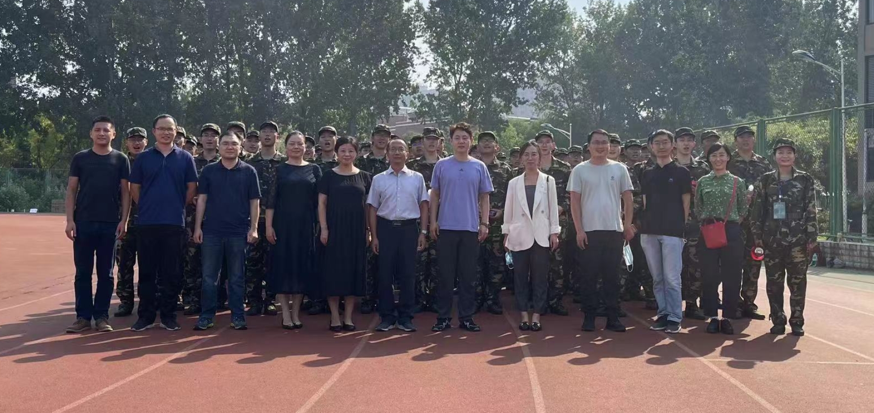 军训场地参加训练的2022级参训员工洋溢着朝气蓬勃、斗志昂扬的精神面貌。李林详细了解了大一新生的军训状况及大家生活身体状况,并代表学院对新入学的同学表达了节日祝福和慰问。
