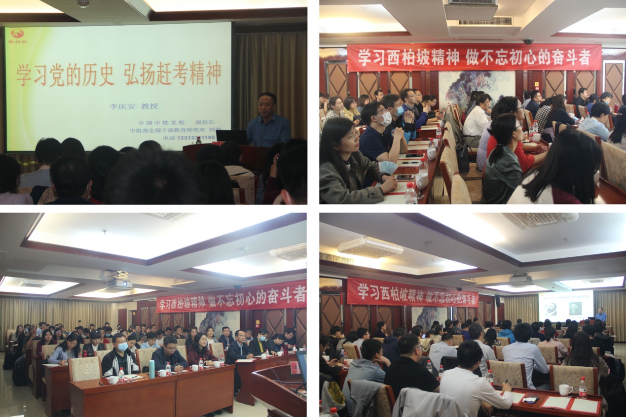 15日中午,一行人到达西柏坡的时候,天空中正下着雨,但这丝毫没有影响学员们学习的热情。原西柏坡纪念馆副馆长,西柏坡精神研究院副经理,现任中国中铁党校副董事长李庆安,给学员们作了题为“学习党的历史 弘扬赶考精神”的专题讲座,向学员们生动详细地介绍了“红船精神”、“井冈山精神”、“延安精神”、“西柏坡精神”,他讲到,要始终坚持“两个务必”,把党史学习教育一定要落实到怎么为人民服务上去,跳出历史周期率,走好新时代的“赶考路”。