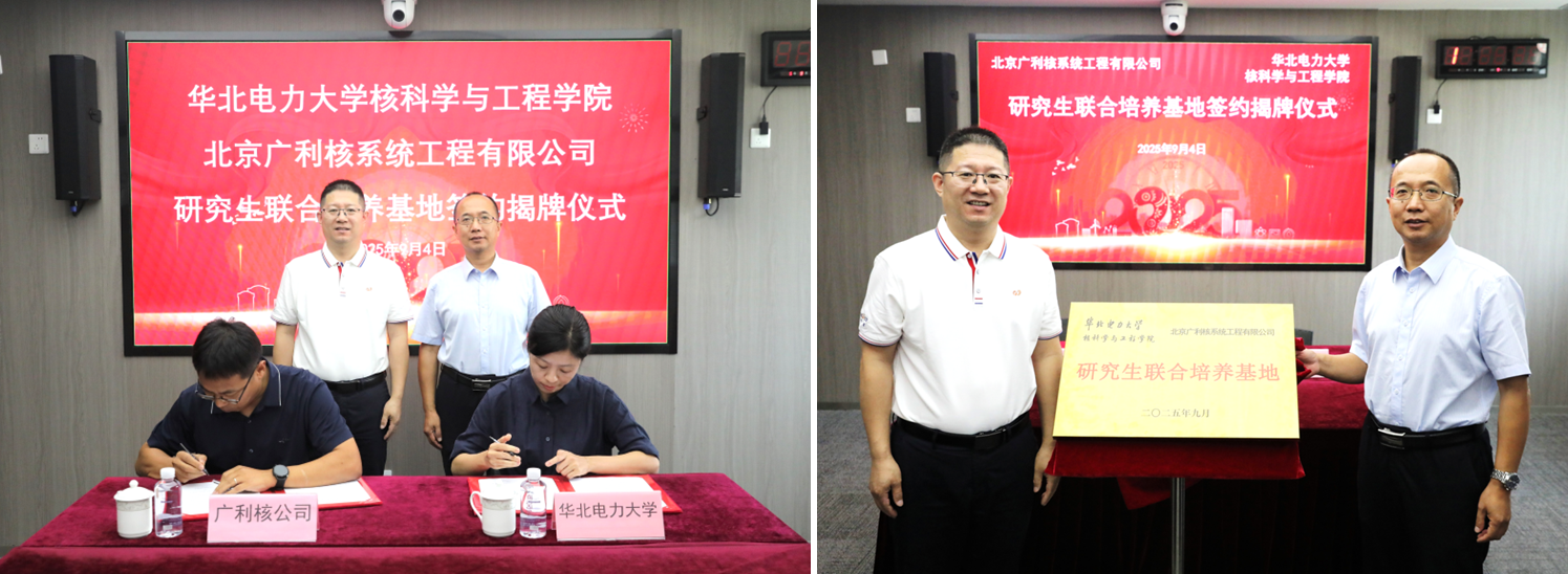 9月4日,公司304am永利集团与中广核数科北京广利核系统工程有限公司举行研究生联合培养基地共建协议签约和揭牌仪式。中广核数科党委委员、副总经理、广利核公司党委书记、董事长孟庆军,核科学与工程公司党委书记李林共同见证签约并为基地揭牌。广利核公司总会计师陈广,304am永利集团经理刘洋代表双方签署协议。签约仪式后,双方举行了工作会谈。