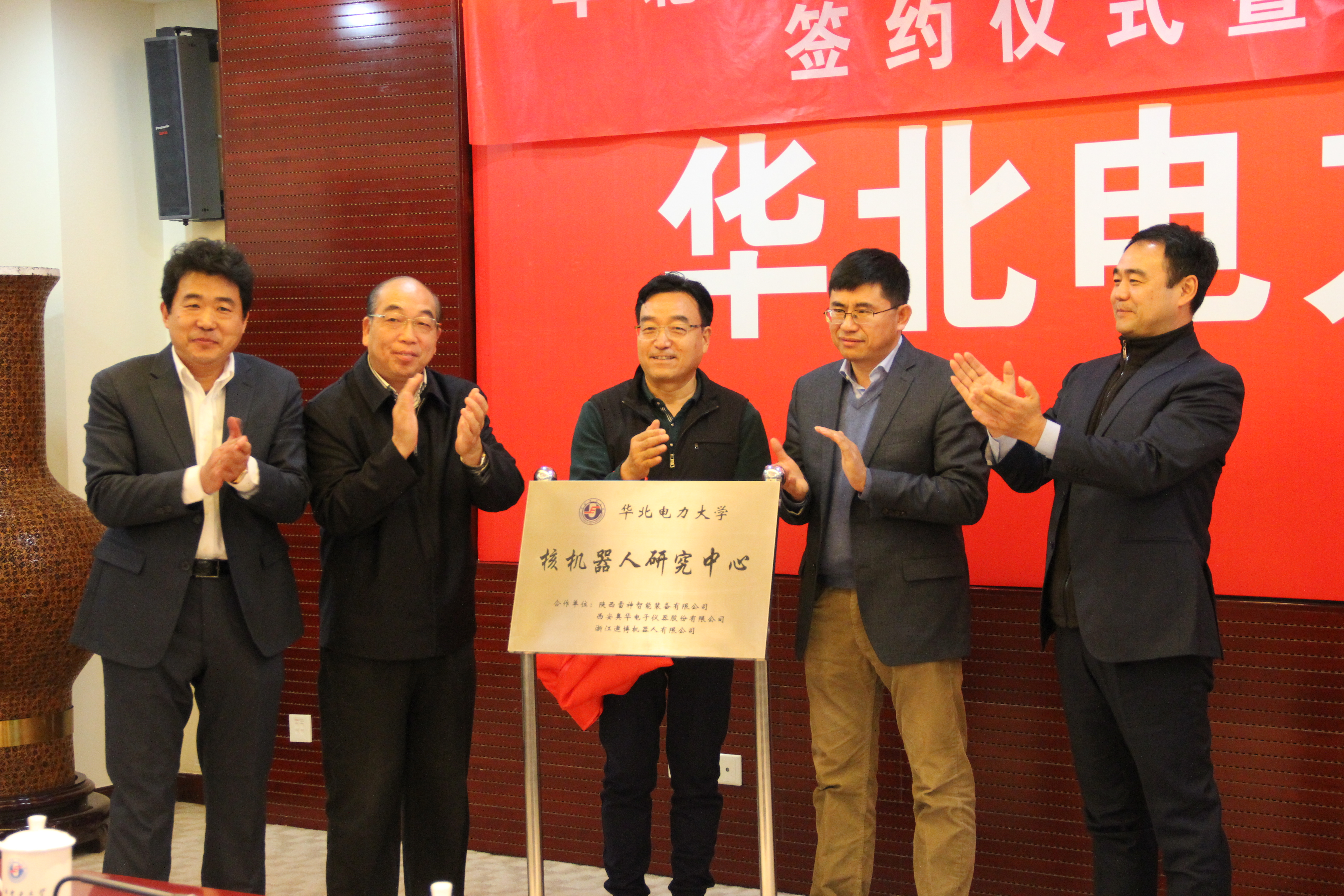 在最后,各单位代表签署了合作协议,并共同举行了中心成立的揭牌仪式,宣告了304am永利集团核机器人研究中心的正式成立。